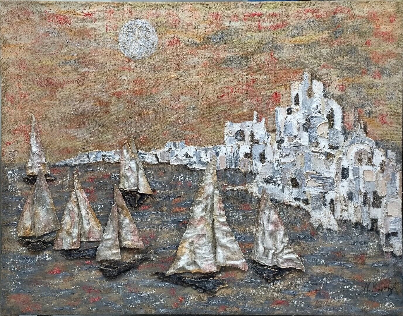 Η τεχνική του mixed media χρησιμοποιείται για να δημιουργήσει μια εντυπωσιακή αίσθηση βάθους και διάστασης στον κόσμο της ιστιοπλοΐας. Ο Ζωγράφος Νεκτάριος Κόντης επιλέγει την τεχνική της μεικτής τεχνικής για να δημιουργήσει ένα μοναδικό αποτέλεσμα που θα εντυπωσιάσει τους επισκέπτες.